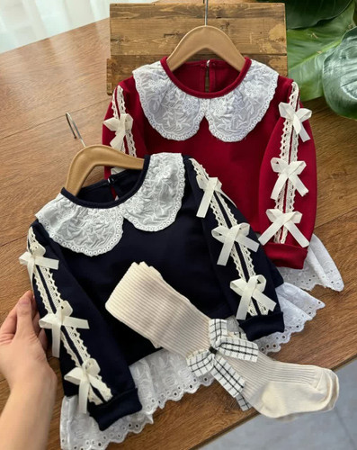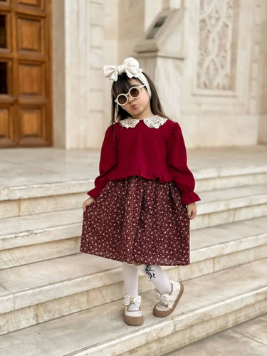 بلوز دورس وارداتی یقه ب ب /عیدانه/ بچگانه/دخترانه کد 041121